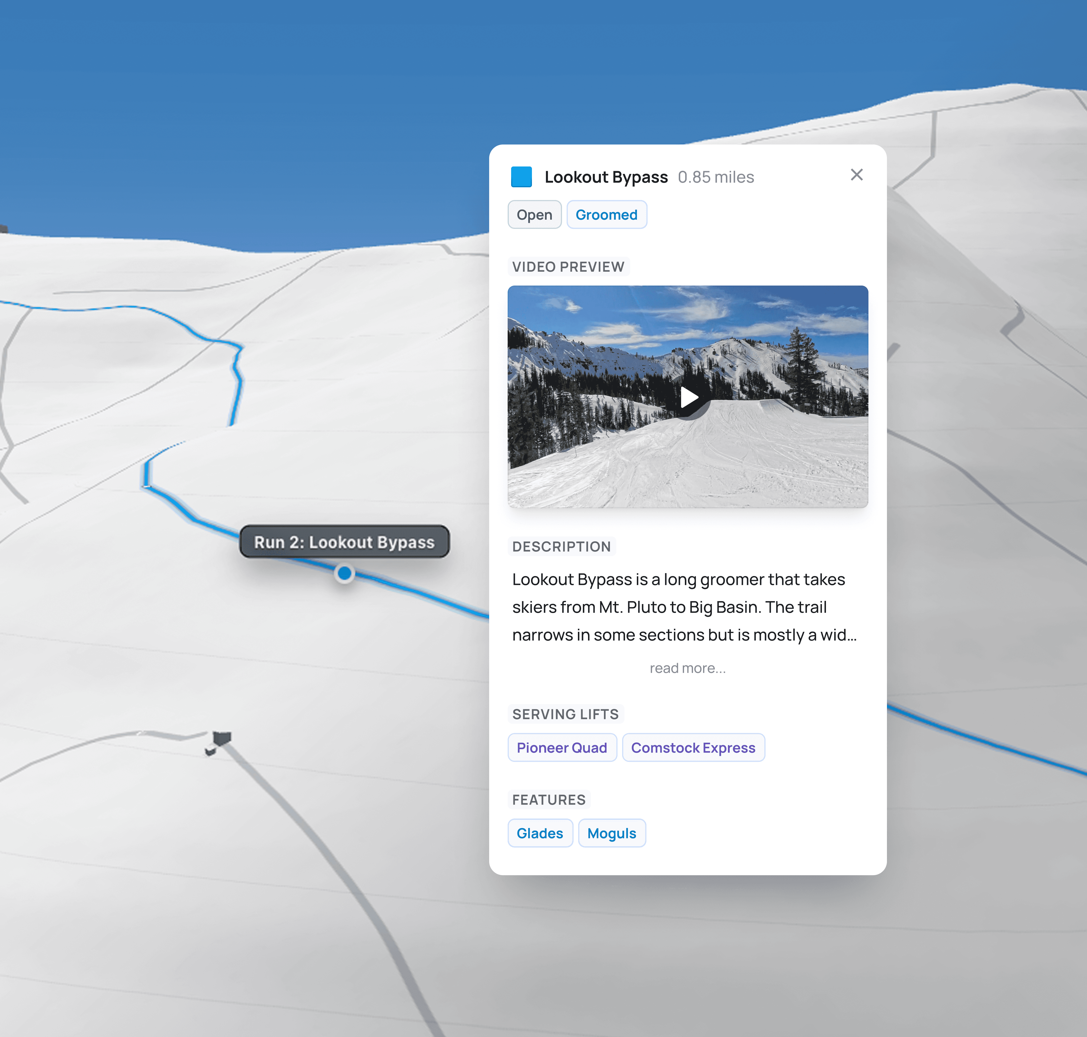 Let guests preview terrain in 3D & video, follow routes that match their skill level and preferences, and get day-of opening alerts