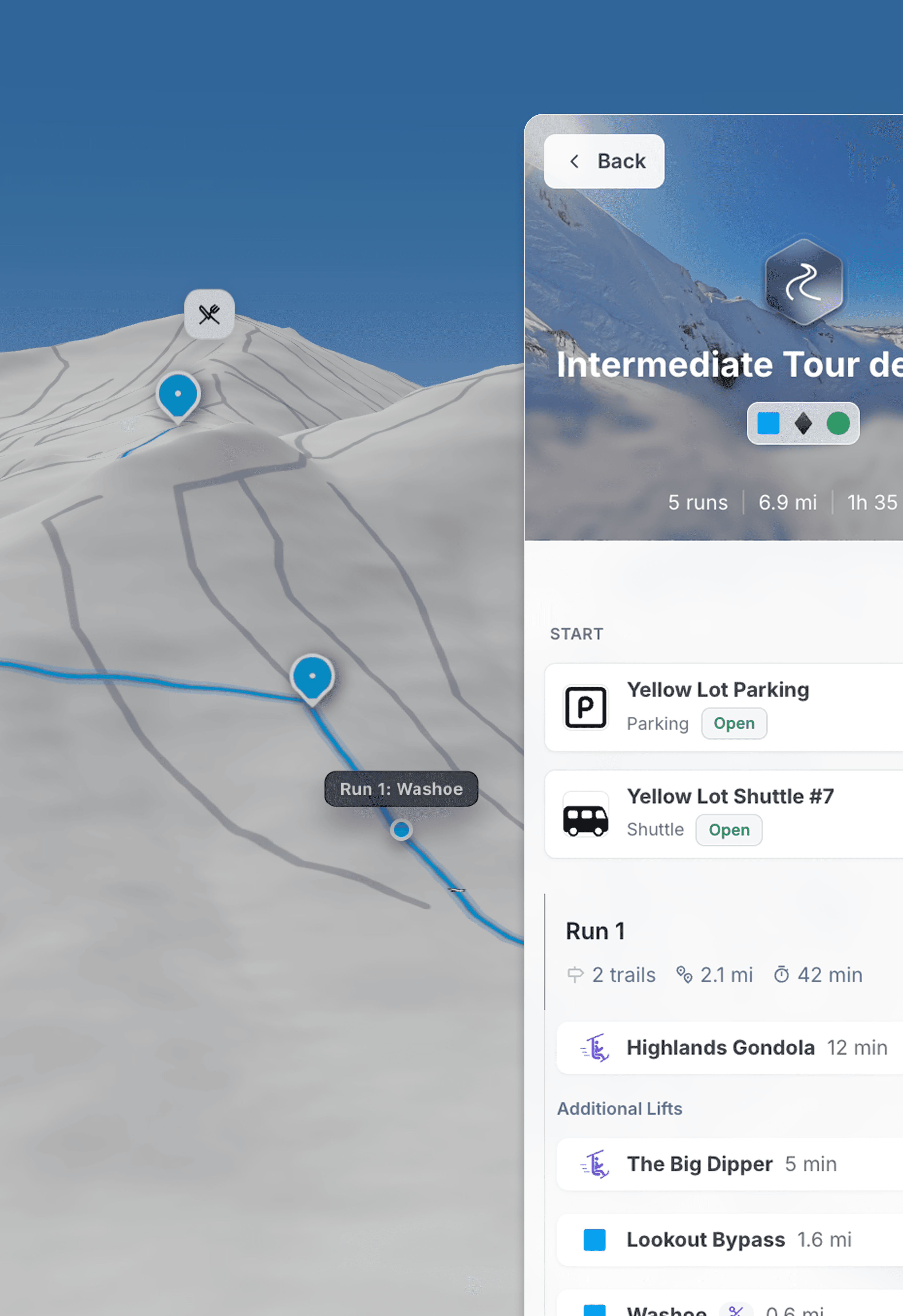 Connect trails, lifts, terrain, and amenities into a curated route plan guests can follow from first run to last—making your mountain easier to explore for every type of skier